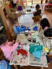 あひる組では、主体的な遊びの時間に自分でオリジナルの凧を作っています!