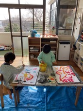 出来上がった鬼をおうちの人に見てもらいたくて「早く持って帰りたい」と、言ってます。節分がおわりましたら持ち帰りますのでお楽しみに!(sabo)