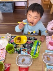 ひよこ組では、お正月遊びを始めました。今日はすごろく・お手玉..,など。すごろくはとにかくサイコロを転がすのが楽しいようです。これから、カルタやパズルなど、お正月ならではの遊びを行なっていこうと思っています。(sabo)