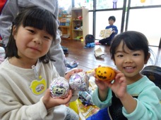 あいにくのお天気で動物園遠足に行くことが叶わず朝の登園時は残念がっていた子どもたちでしたが、お部屋でかぼちゃやおばけのハロウィン製作を楽しんだり、ホールやお部屋でもたーっぷり遊んだりしながら過ごし、帰る頃にはみんな笑顔&満足気なお顔でした!