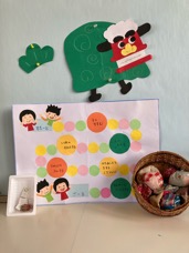 ひよこ組では、お正月遊びを始めました。今日はすごろく・お手玉..,など。すごろくはとにかくサイコロを転がすのが楽しいようです。これから、カルタやパズルなど、お正月ならではの遊びを行なっていこうと思っています。(sabo)